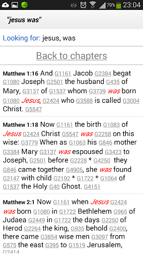 If you are annoyed about ads - try paid version "Bible & Strongs Concordance" which you find in my apps.