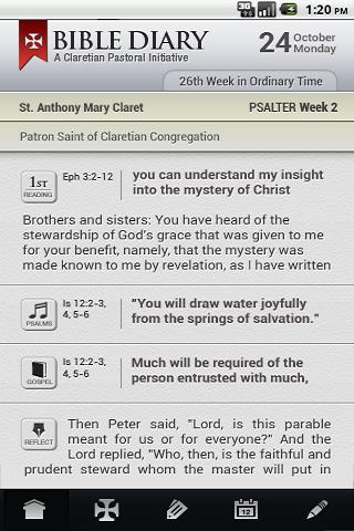 Bible Diary App, first of its kind, is produced jointly by the Claretian Publications and the Indian Bible Foundation with the mission of enabling you to pray as you go.