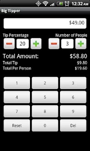 Simple tip calculator which allows splitting bill among multiple persons, adjustable tip percentage, and auto-calculation as you type. Calculate tips with speed and ease with Big Tipper!