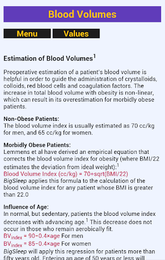 BigSleep demonstrates several calculations used in the anesthetic management of obese patients. It is useful in the operating room, and as a learning tool. Selected references document the clinical use of the formulas.