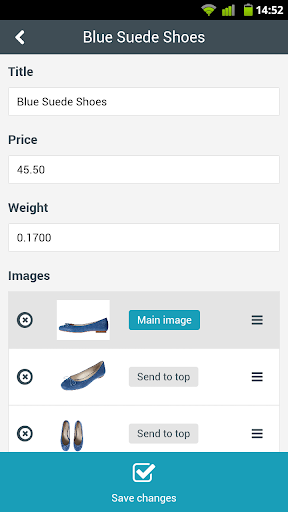 Need to make a quick change to one of your products? Set whether a product is featured or hidden, edit the title, change the pricing, upload new photos from your library, or even straight from your camera app. You can even reorder your product images.