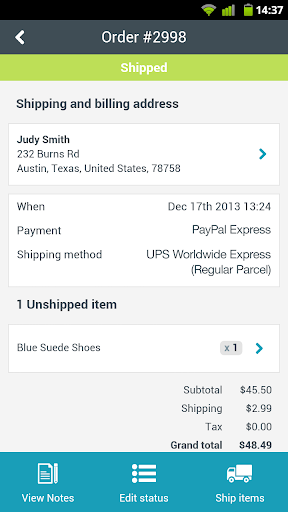 This app was built with your workflow in mind, meaning you can process orders from the initial notification all the way through shipping. At every step along the way, you’ll see how many items require your attention. Each order displays internal notes, plus comments with special delivery instructions or other customer requests.