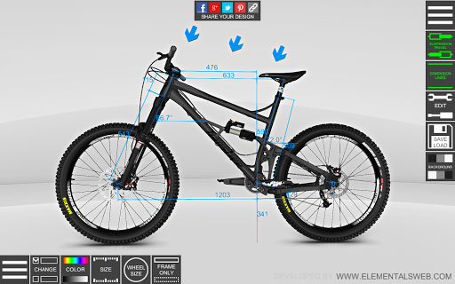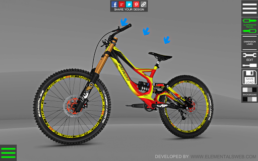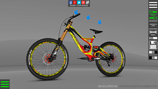 We make option to paint the components that might be painted by custom colors: bike frames, wheel hubs, spokes, hydrolines, rims, grips, pedals, stems, handlebars. For such components as: bike forks, tyres, headsets, brakes, saddles, chain guides, brake rotors, shocks, derailleurs, cassettes, we leave only those colors that provided by the manufacturer. If you want to see your bike in our configurator, please vote on the project page for a new frame or fork you’d like to see in the future updates.