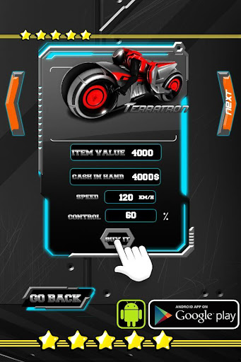 2. Can select as well upgrade your superbikes to increase speed and performance to race through the city.
