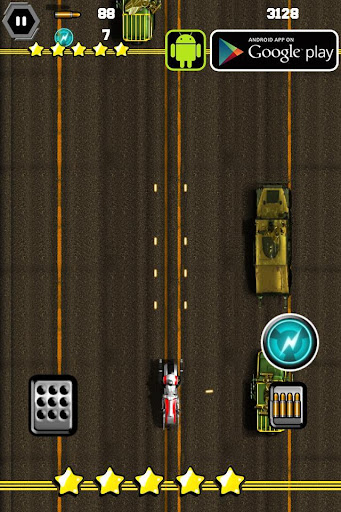 Do you have the guts to Race through the city , Fire bullets ,missiles and bombs to blow some tanks , military jeeps , Humvee one the way , then take on your super bike , load it and speed it through the highway to save your frontier. Reach your frontier before they do and warn your men. The war has begun .