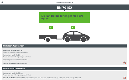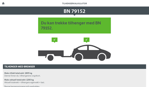 Tilhengerkalkulatoren kan foreløpig kun brukes for førerkort klasse B (personbil) og klassene B96 og BE (personbil med tilhenger).