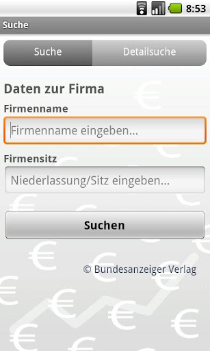 - Suche: Hier können Sie über einen Firmennamen und/oder Firmensitz nach Veröffentlichungen suchen.