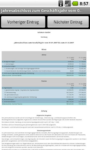 Der BilanzMonitor ist optimiert für Android 1.6 oder neuer. Für die Nutzung ist eine aktive Internetverbindung erforderlich.
