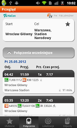 The mobile journey planner for Android smartphones offers the most comprehensive information service for your journey with all railway providers in Poland and beyond the border. The free app seamlessly finds connections or checks current arrival times. Plan your trip from your current location to the next train station, a specific address or your point of interest. Bilkom is the only official app for Android smartphones providing all the information available in the timetable of Polish State Railways PKP (www.rozklad-pkp.pl).