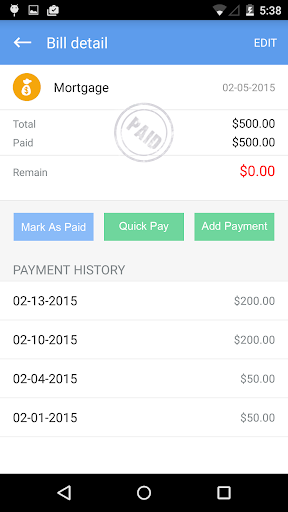 Bill Keeper has a friendly user interface. You will know at a glance which bills need your attention and you can also track your expenses with beautiful charts and graphs.
