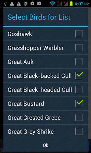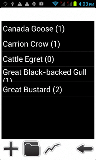 This will show you the list of birds you're hoping to see at this site. When you see or hear a bird. Just click the name, and the counter next to it's name will increased by 1, and record also it's GPS location (if you have GPS enabled and available on your phone). You will know when the GPS is ready to start recording locations when you see the satellite icon in the top left of the list form.