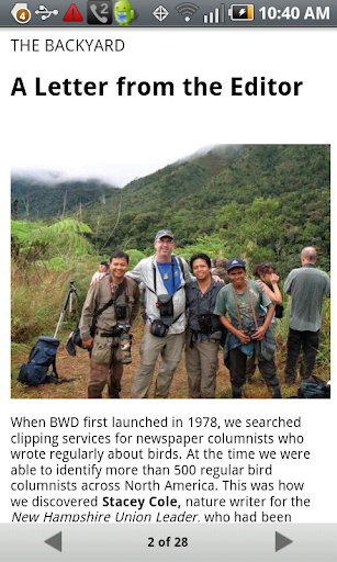 - Regular updates from the BWD “home nest,” via our in-app “Birder Feeder” RSS feed including selected blog posts, podcasts, travel articles, festival announcements, prize drawings, and exclusive offers.