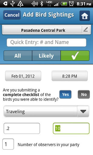 BirdLog is the only Android app for recording and submitting your bird sightings directly into eBird while in the field!