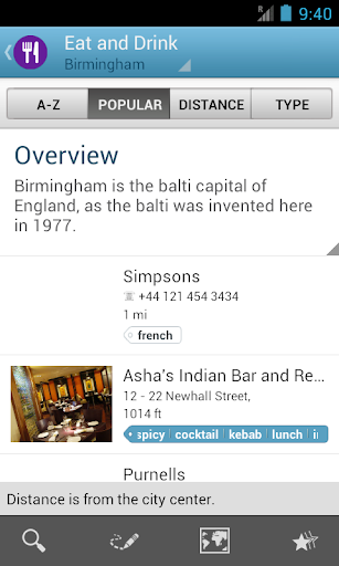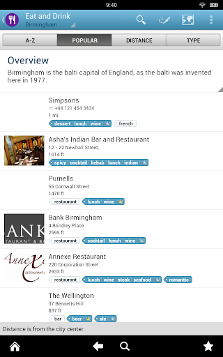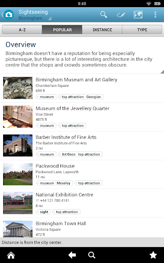 Features of Triposo’s guide to Birmingham:
