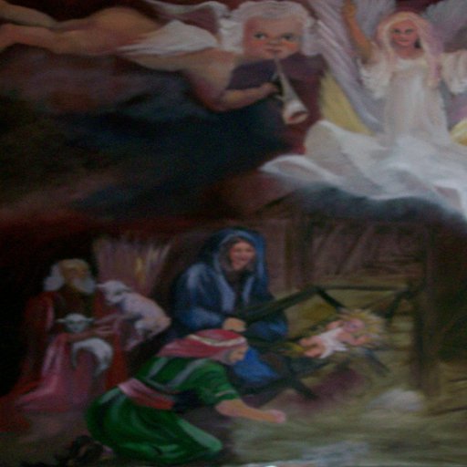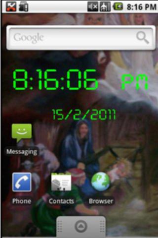 Wallpaper commemorating the birth of Jesus oil painting with digital clock.