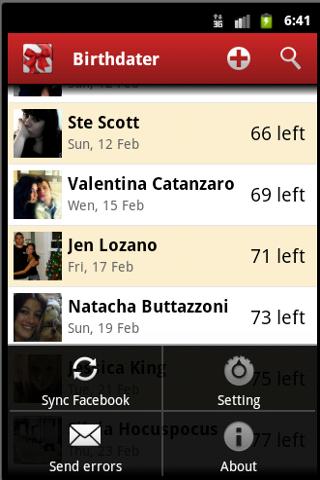 ☺ SYNCHRONIZE WITH FACEBOOK: anytime you like, you can synchronize Birthdater with Facebook with a simple tap on your device; instantly you will obtain the list of the upcoming birthdays!(need Facebook app installed)