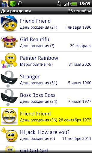 The app lets you quickly view various events from your phone's address book birthdays, anniversaries, other) as well as reminding you of the upcoming ones.