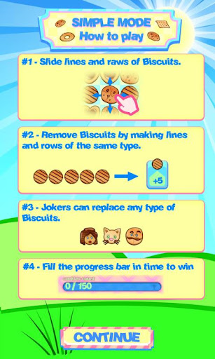 Hurry-up! Make crunchy lines of biscuits! Collect big amount of various cookies for your biscuit box! Use jokers to make easy combos!