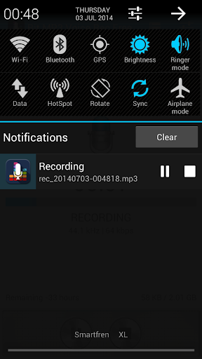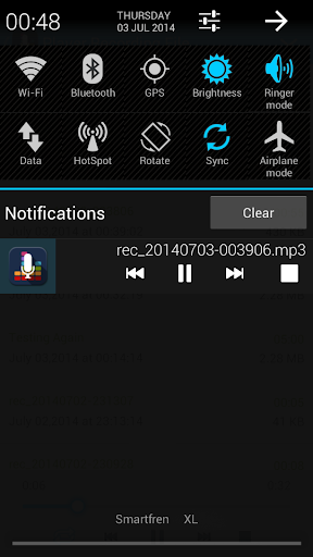 • Control the recorder from status bar [Pause, Resume, Stop] (Support only for Android Honeycomb and higher)
