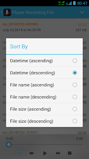 • Sorting list of recording file in player [Datetime asc, Datetime desc, File name asc, File name desc, File size asc, File size desc]