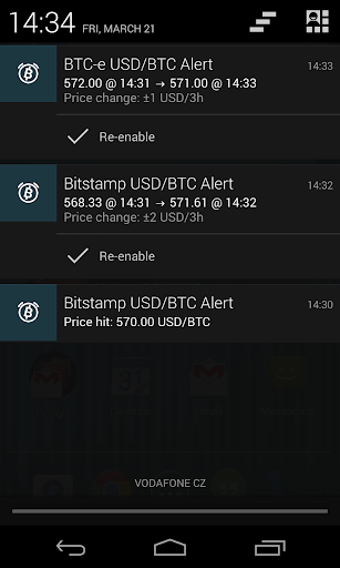 Instead of having to constantly poll markets (as other similar apps do - thus draining your battery), your device will receive push notifications via Google Cloud Messaging from our cloud based monitoring service.