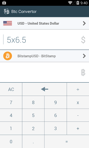 - You enter the number or the calculation in the appropriate window (currency or Bitcoin)