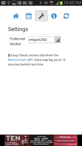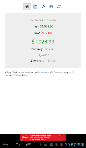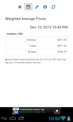 The Bitcoin Easy Check backend server caches data from the bitcoincharts.com API and may lag 15 minutes or more behind real time.