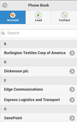 On the top left of the main screen there is your phonebook, were you have your Leads, Accounts and Contacts.