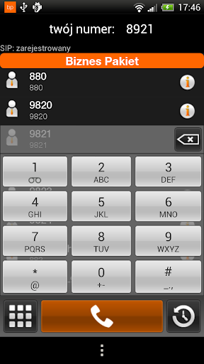 Aplikacja umożliwia wykonanie połączeń głosowych w technologii IP protokołem SIP. poprzez aktywną sieć WiFi w Smartphone powiązaną z usługą stacjonarną Biznes Pakiet.