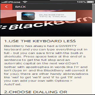 This application contains Tips and tricks that will help you get to know how to use your blackberry phone with ease.This is NOT an official blackberry application
