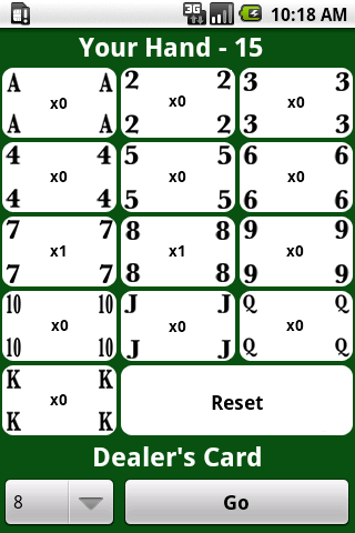 Want to know when to hit, stay, split, or double down? Simply enter your cards and the dealers up cards to see what "The Book" advises you to do.
