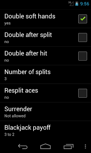 Blackjack payoff: 3 to 2 / 6 to 5 / 1 to 1 / 2 to 1