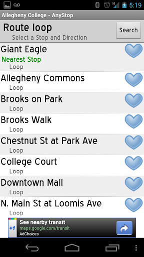 AnyStop shows all routes and all stops for each route. Find the routes and stops you use the most and favorite them for quick access.