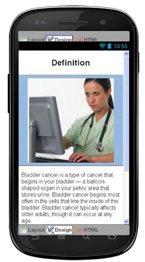 This app contains bladder cancer diseases information for knowledge if you need to apply then please contact to nearby doctor. Useful information but is not a substitute for professional medical advice, diagnosis or treatment. If you think you may have a medical emergency, immediately call your doctor or the emergency services. Before acting on any of the information in this application, consult with your doctor to make sure that it is right for you.
