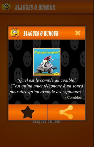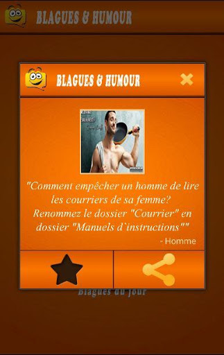 Après avoir téléchargé l'application, les blagues et plaisanteries seront installées sur votre Smartphone- tu n'a pas besoin d'avoir l' accès à l'internet pour les parcourir.