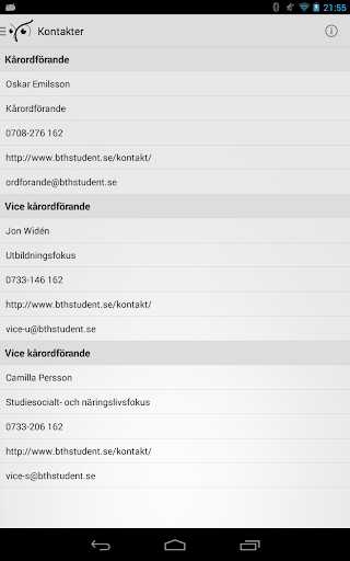 * Tillåter dig att komma i kontakt med Blekinge studentkårs presidie