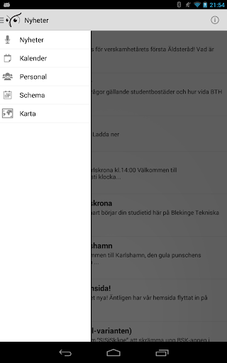 Syftet med appen är att tillhandahålla en informationskanal till Blekinge studentkårs verksamhet. Appen samlar in information och presenterar den i ett format anpassat för mobila enheter.