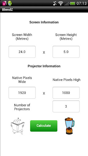 To begin all you need to know is the desired width and height of the projection surface, the native chip resolution of the projectors (or output resolution of the source device) you are planning to use, and the number of projectors you think you need. Then, BlendZ will give you all the information you need. BlendZ works in both Feet and Metres, just choose your preferred flavour of measurement, in 'Preferences', and off you go.