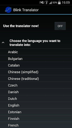 Blink Translator is a quick tool which helps you translate words/phrases into more than 30 languages while using other apps. All you have to do is to choose the language you want to translate into, turn on the app and you are ready to go! You can now get the experience of a good translator in a popup window. Just turn on the app, copy any text, tap our logo and enjoy it! :)