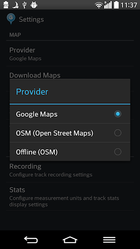 - Choose between Google Maps and OSM map providers;