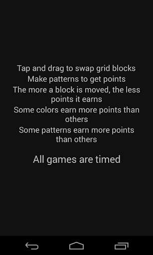 Block matcher is a game where you try to match blocks in sets by their color. The twist is that you can move the blocks anywhere to make your set. The sets can be vertical, diagonal, or horizontal. You can also make a 2 by 2 square but watch out there are only 20 seconds per game! Highly addictive!