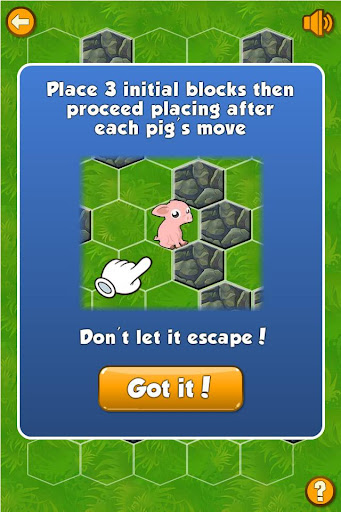 Block the Pig is a free turn-based puzzle game. Put stone blocks on a hexagonal grid, blocking the pig's escape attempt. The pig makes its move after each new placed block. Before the pig starts moving, you can place 3 bonus blocks to plan ahead. Once successful, you will advance to the next more challenging hexagonal maze.