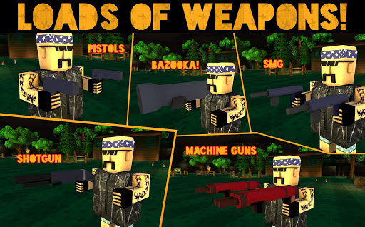 • 枪从手枪、 机关枪、 SMGs、 猎枪,到爆炸的火箭发射器火箭筒 !