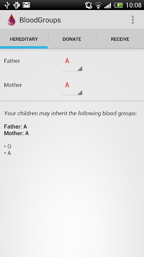 BloodGroups is an application that provides information about the hereditary blood groups(blood types) of your children. You can select the blood group of both the father and mother and see which hereditary blood groups are possible.