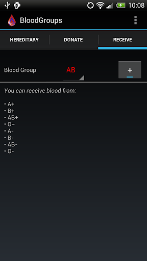 It's also possible to see to which blood groups you can donate blood and from which groups you can receive blood.