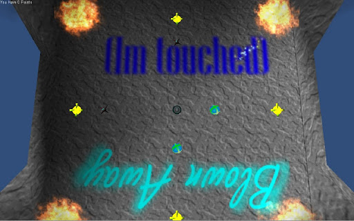 Blown Away: I'm Touched is a laid back arcade game with cutting edge graphics. Push around enemies by touching the screen, almost as if you finger was a mighty downdraft or hairdryer. Keep you blob safe from the spike, star, and glow enemies. Can you beat the built in high scores? Shaking the device will bring up the settings.