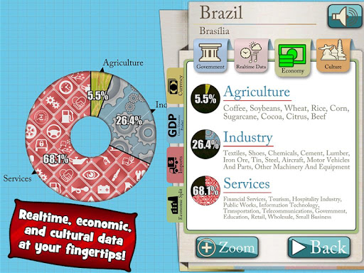 - Economic data, including: GDP, sample currency, import/exports, and more.