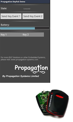 This apps can work with the TI's CC2540DK-MINI development kit (Keyfob) or other BLE devices with FMP or BAS.