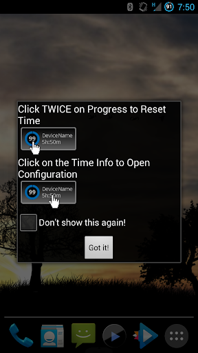 This is a simple widget that will track your Bluetooth Device/Headset Battery usage by timing your Music/Media Play Time as well as Standby Time. It will then provide you with an accurate estimate of how much time is left on your Bluetooth Device/Headset battery life.