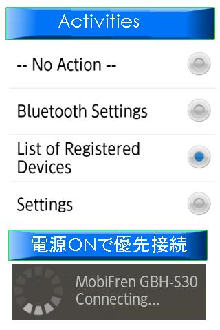 電源:None, Display:Bluetooth設定